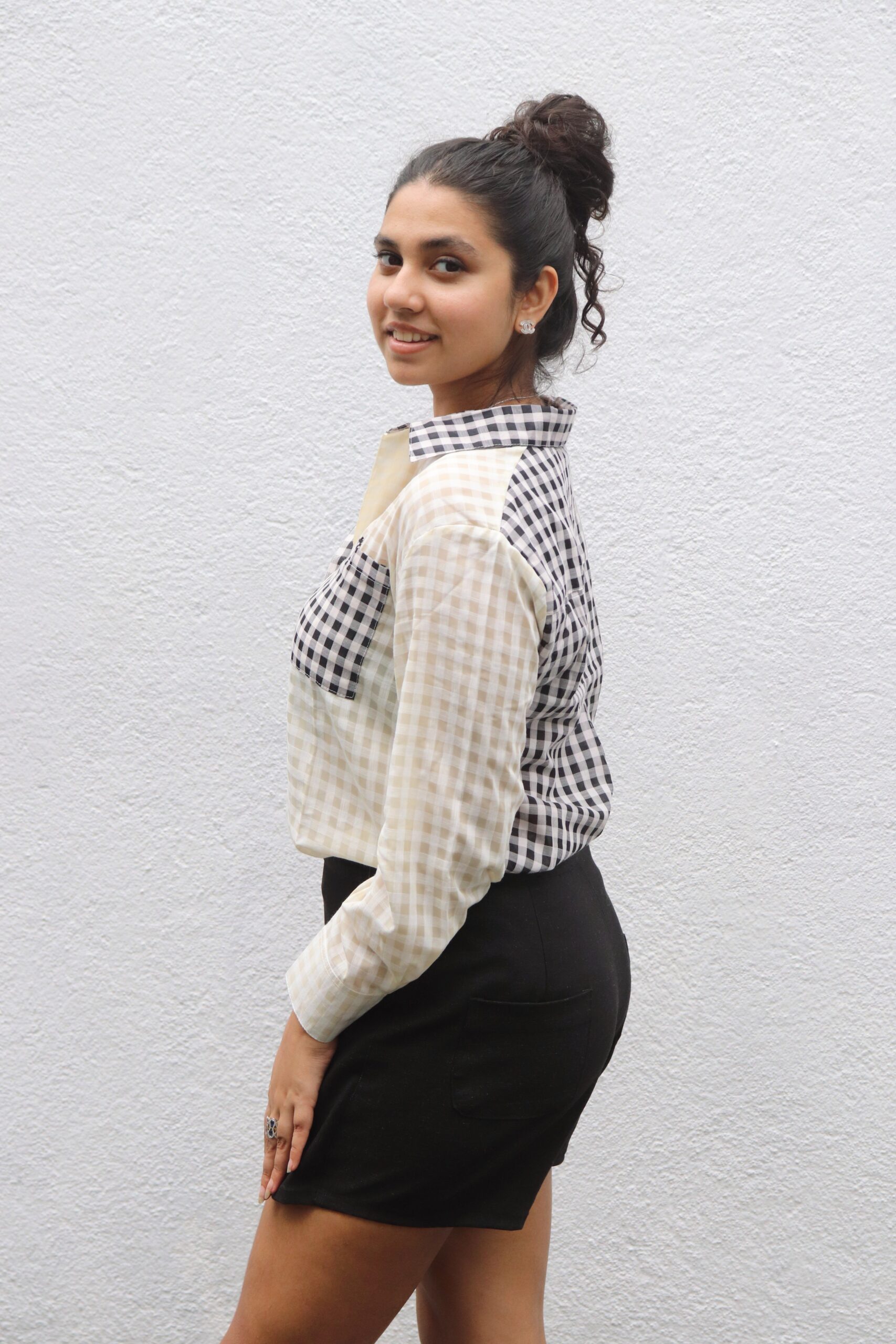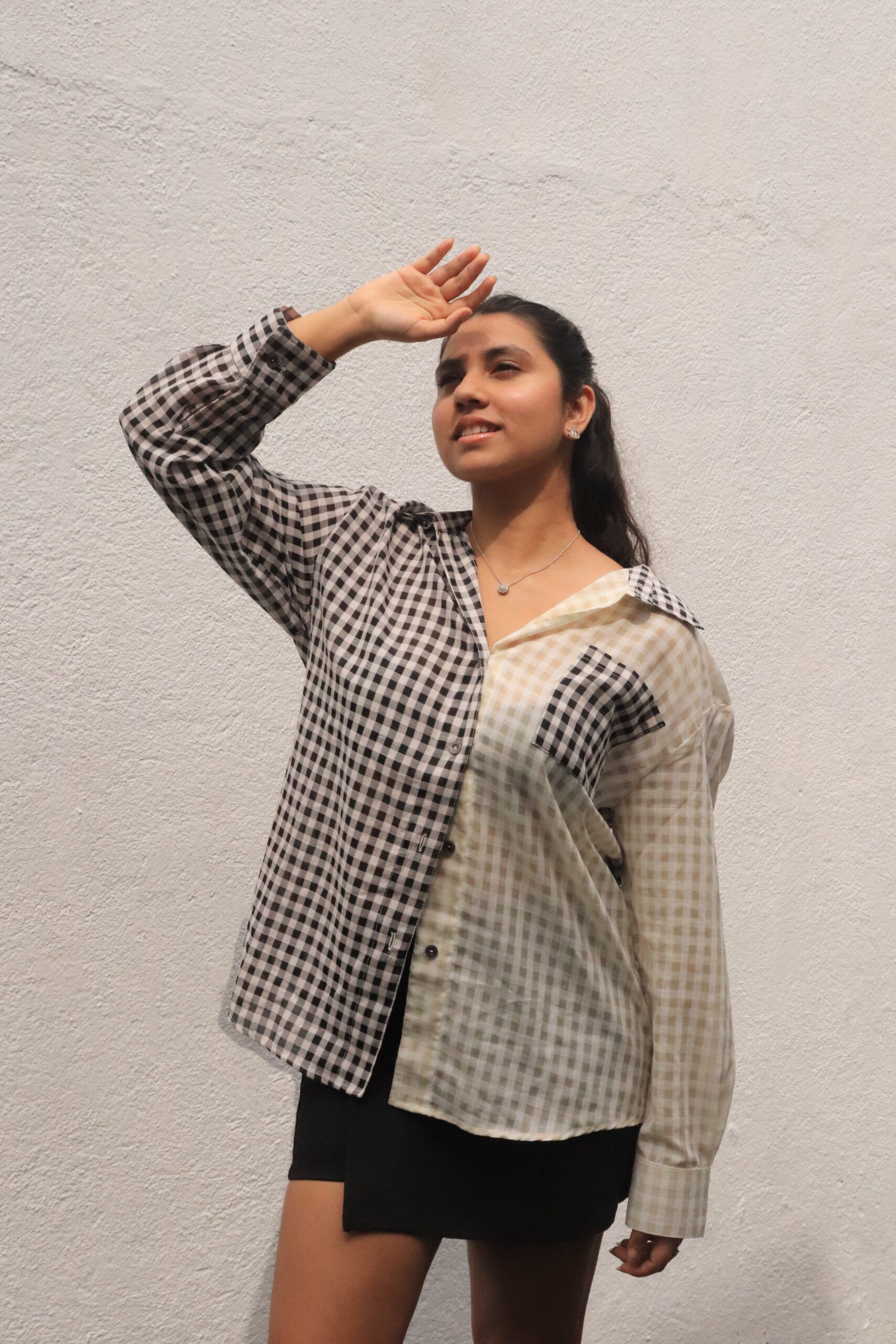 Elevate your everyday wardrobe with this Two Tone Dropped Shoulder Shirt from ESTHE. Featuring a playful mix of gingham checks and a relaxed, boxy silhouette, this shirt brings a fresh, modern edge to classic patterns. The dropped shoulder design and soft fabric offer all-day ease, while the contrast tones add standout appeal. Perfect for casual Fridays, creative workspaces, or weekend strolls—style it tucked, tied, or loose for effortless cool.